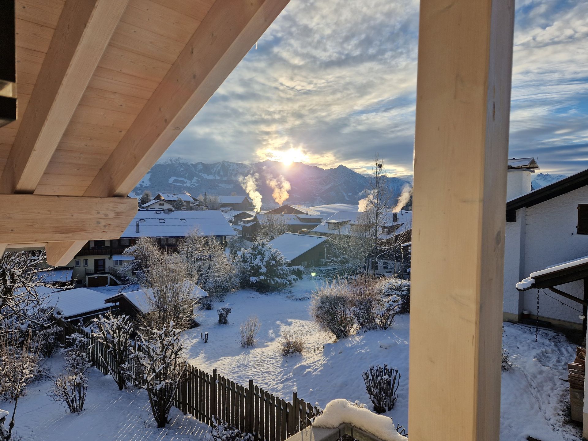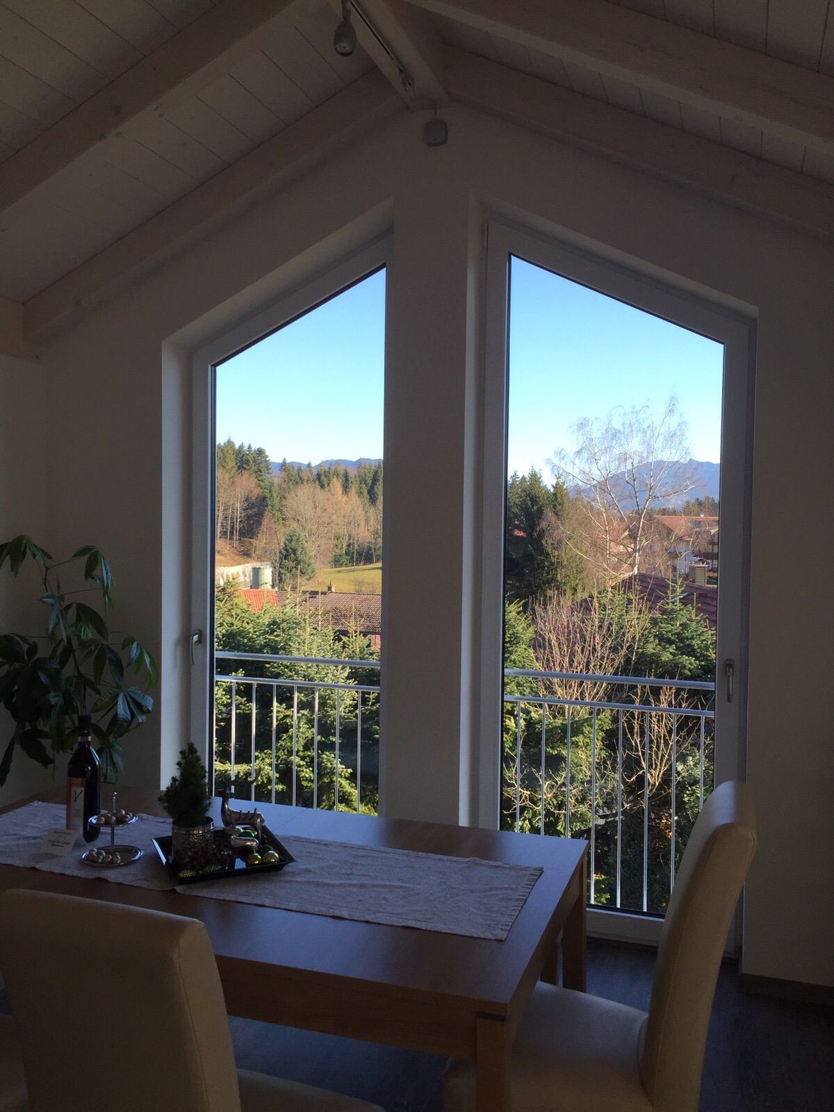- Gemütlicher Essbereich in der Gaube mit Blick auf Ofterschwang