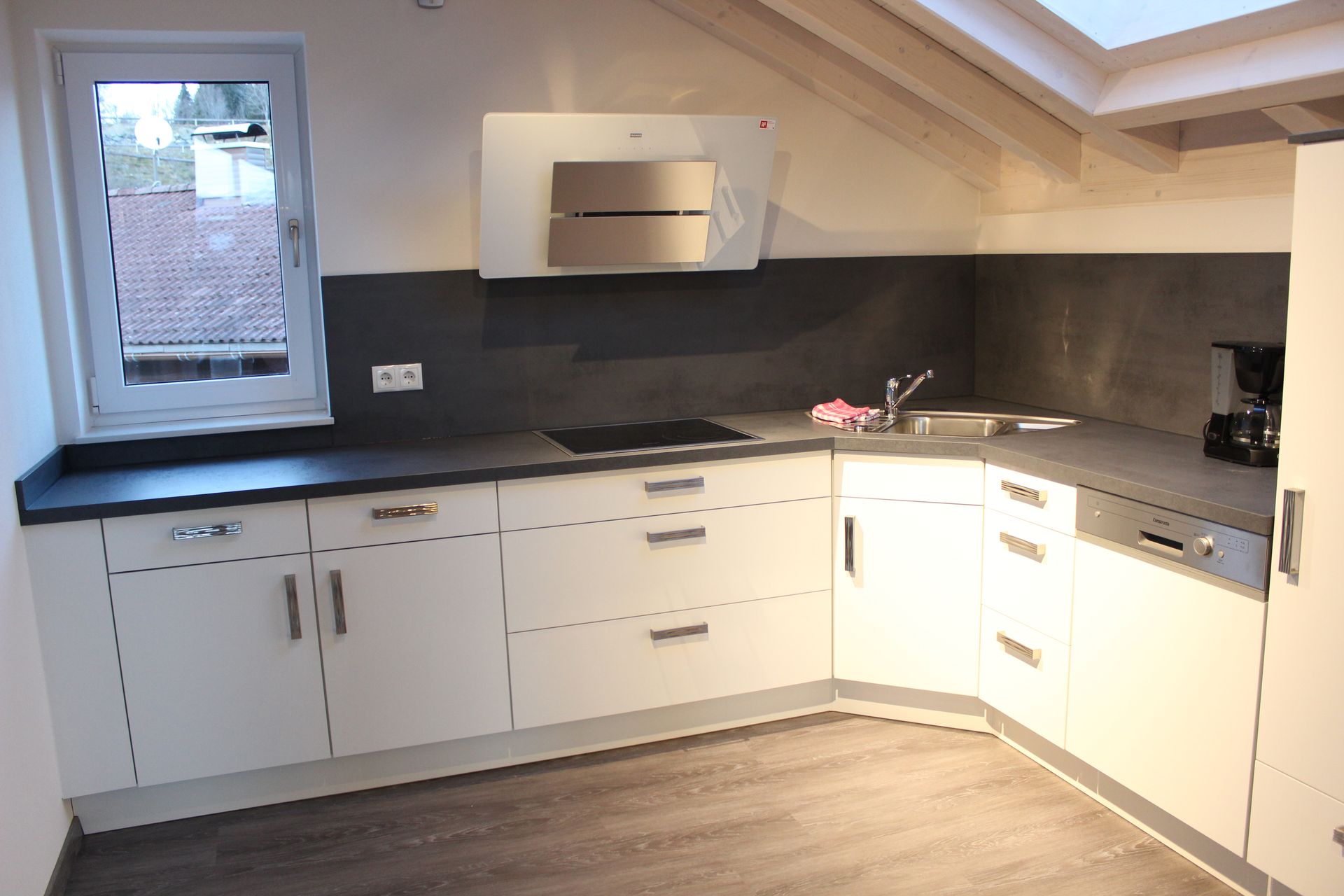 - komplett eingerichtete Küche mit Backofen, Mikrowelle und Spülmaschine